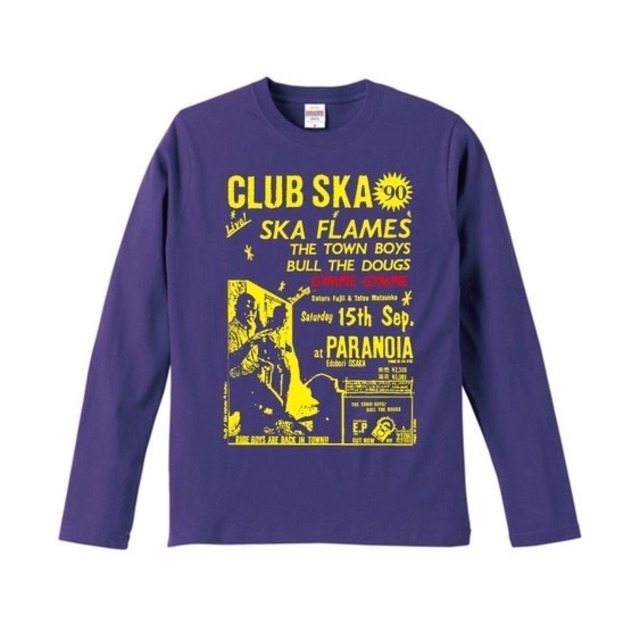 ※こちらの商品は受注生産品になります。 オーダー期間:9/16〜9/29 納品目安:10月中旬予定 Gympie Gympie オリジナルロングTシャツ CLUB SKA ‘90 ver パープル お気に入りの昔のフライヤーを使ってTシャツを少しだけ作りました サイズはS.M.L.XL 値段は4500円 Gympie Gympie WEBのみで発売 【Gympie Gympie WEB特典】 レコード/TシャツをWEBにてお買い上げの方にはZION RECORDオリジナルステッカーをプレゼント!